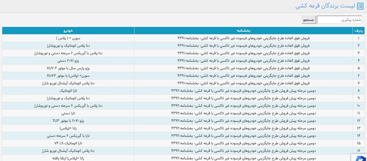 بر همین اساس در حال حاضر طبق لیست بارگذاری شده بر روی سایت گروه صنعتی ایران خودرو، برندگان قرعهکشی این دوره به تفکیک محصولات و متقاضیان قابل مشاهده است؛ ضمن اینکه به منتخبان نیز به صورت پیامک اطلاعرسانی خواهد شد تا مشتریان از زمان اولویت خود مطلع شوند.