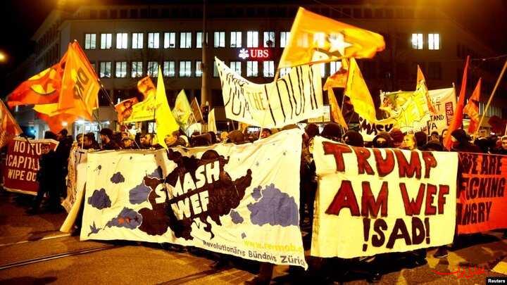 به گزارش تحلیل ایران به نقل از تاس، بیش از ۲ هزار نفر شامگاه دوشنبه در شهر زوریخ سوئیس، در یک تجمع اعتراضی مخالفت خود را با حضور دونالد ترامپ رئیس جمهوری آمریکا در مجمع جهانی اقتصاد (WEF) در داووس اعلام کردند.