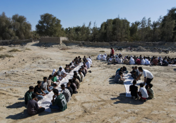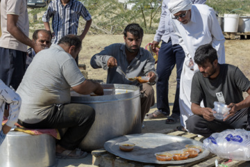 مراسم نذری، خیرات و دعا خوانی برای باران و به مناسبت بیستمین سالگرد زلزله قشم، صبح جمعه (۷ آذر ۱۴۰۴) در روستای گورزینِ جزیره قشم برگزار شد.