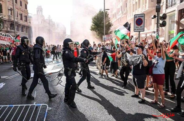 با پیشبینی تظاهرات گسترده، بیش از یک هزار افسر پلیس امروز همزمان با رسیدن دوچرخهسواران به مرحله نهایی مسابقه ۲۱ روزه در مادرید، مستقر شده بودند؛ اما موفق به کنترل خشم تظاهرکنندگان حامی مردم مظلوم فلسطین نشدند.