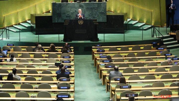 بنیامین نتانیاهو نخست وزیر رژیم صهیونیستی سخنرانی خود را در مجمع عمومی سازمان ملل لحظاتی قبل با یاوه گویی علیه ایران آغاز کرد.