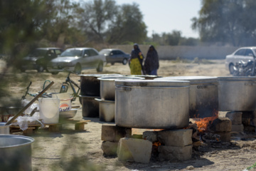 مراسم نذری، خیرات و دعا خوانی برای باران و به مناسبت بیستمین سالگرد زلزله قشم، صبح جمعه (۷ آذر ۱۴۰۴) در روستای گورزینِ جزیره قشم برگزار شد.